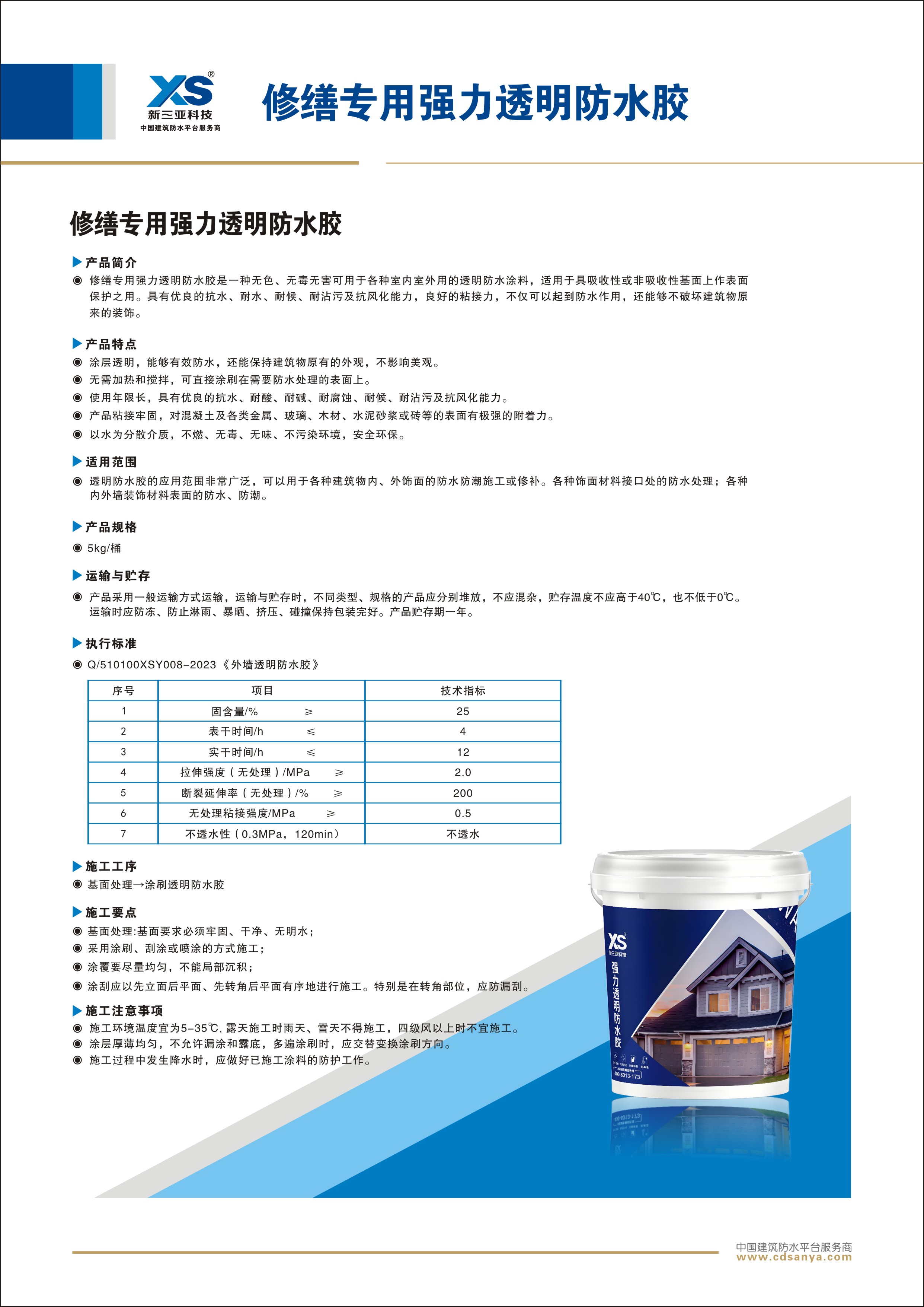 產(chǎn)品簡介: 修繕專用強力透明防水膠是一種無色、無毒無害可用于各種室內(nèi)室外用的透明防水涂料,適用于具吸收性或非吸收性基面上作表面保護之用。具有優(yōu)良的抗水、耐水、耐候、耐沾污及抗風(fēng)化能力,良好的粘接力,不僅可以起到防水作用,還能夠不破壞建筑物原來的裝飾。 規(guī)格:5kg/桶